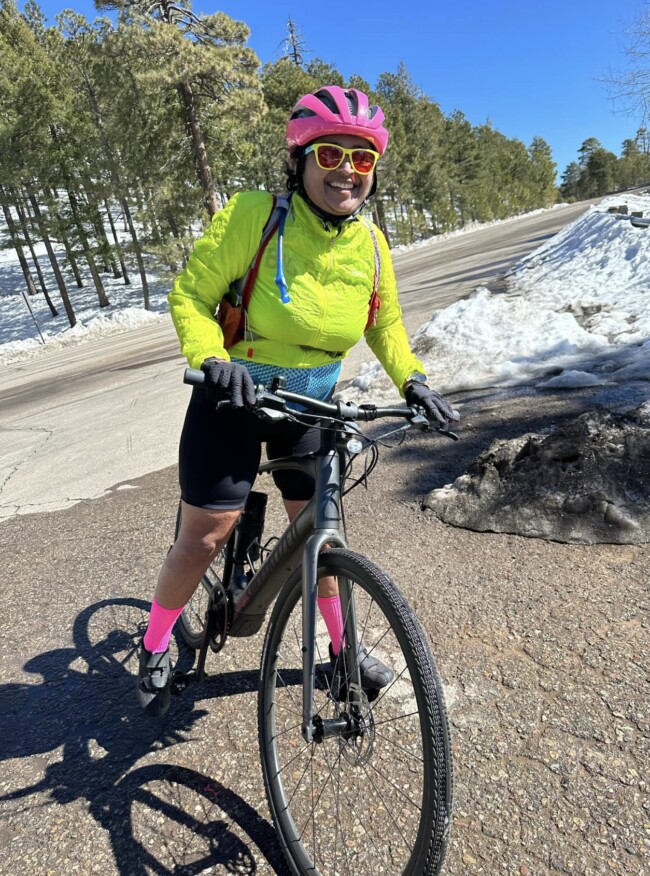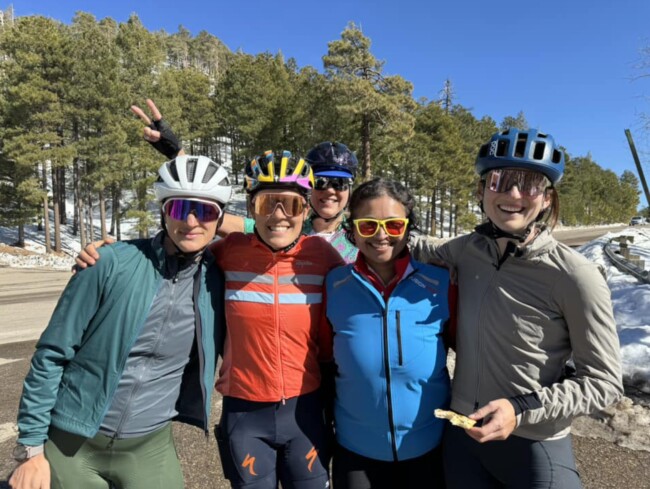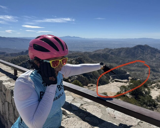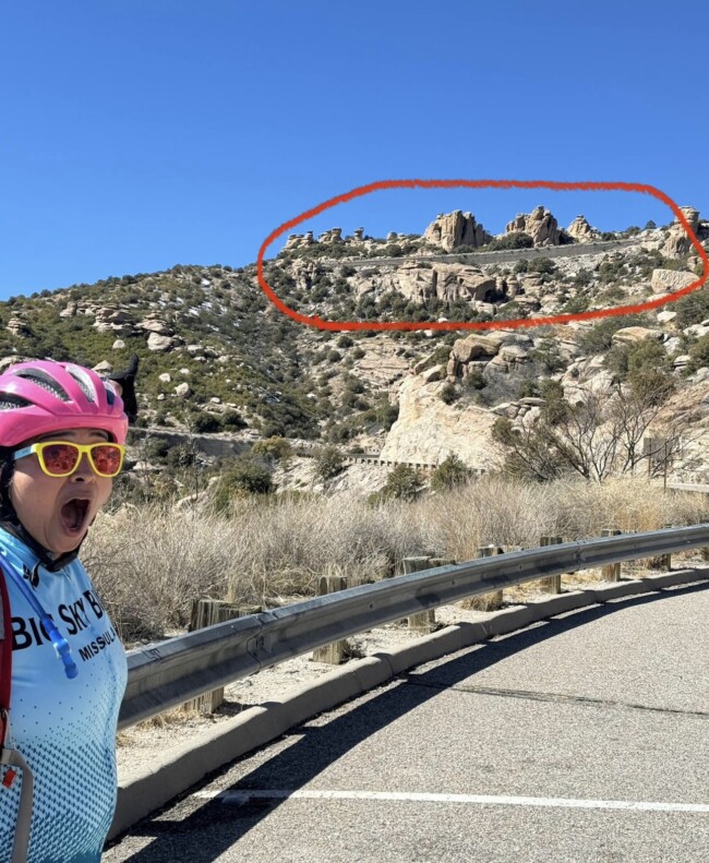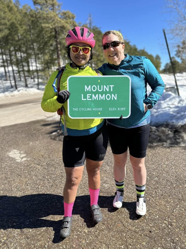 Mt. Lemmon is one of the epic climbs in US, with many cyclists/triathletes making Tucson their winter training base. Going in on the last day of our camp, I knew I wasn’t as trained on hills as I should’ve been. But what the heck, nothing ventured, nothing gained … and Barbara, Becky and I started the climb together before I was easily dropped.